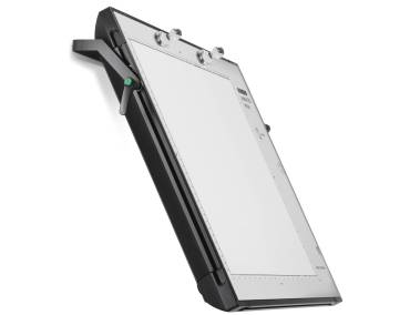 Universeller Aluminium-Schwenkbügel als optionales Zubehör. Sowohl als Aufstellbügel als auch zur Wandbefestigung der Leuchtplatte verwendbar.
