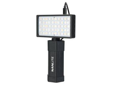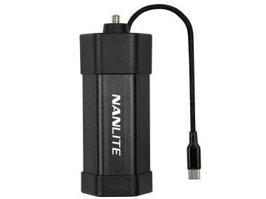 Zum Betrieb einer Leuchte NANLITE PavoTube II 6C RGBWW (3708) oder NANLITE LitoLite 5C RGBWW (3740) mit Lithium-Ionen-Akku Typ Sony NP-F550 oder einem baugleichen Akku, z. B. Kaiser KNP-F550 (3632) und zur Verwendung der Leuchte als Handleuchte.
