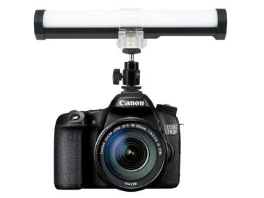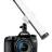 Kugelgelenk mit Anschlussgewinde 1/4" und Aufsteckfuß mit Kontermutter für sicheren Halt im Zubehörschuh der Kamera. Stativgewinde 1/4".