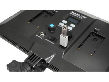 Stromversorgung wahlweise über das mitgelieferte Netzgerät oder für den mobilen, netzunabhängigen Einsatz mit zwei optional erhältlichen Lithium-Ionen-Akkus vom Typ Sony NP-F (Art.-Nr. 3632 oder 3634). Der Ladezustand wird auf dem Info-Display für jeden Akku einzeln angezeigt.