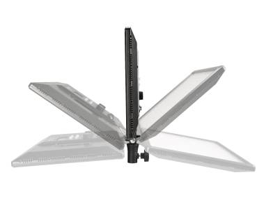 Multifunktionale LED-Stativleuchte mit äußerst flachem Gehäuse und den Beleuchtungsarten blendfreies Weißlicht, gerichtetes Weißlicht und farbiges Licht sowie 17 Spezialeffekten, die alle individuell angepasst werden können. Inklusive Netzteil.