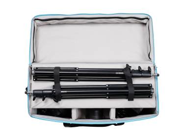 Transportables Studio-Beleuchtungssystem für Foto- und Videoaufnahmen. Besonders geeignet für Cine/Broadcast, Virtual Production, Werbe-, Porträt- und Produktaufnahmen, Interview, Videokonferenzen, Streaming sowie Livestream, Social Media-Aktivitäten, Vlogging und Webinare. Bestehend aus zwei Weißlicht-Scheinwerfern FS-300B Bi-Color, zwei Reflektoren, zwei Softboxen 90 x 60 cm, 2 Leuchtenstativen und Transporttasche: