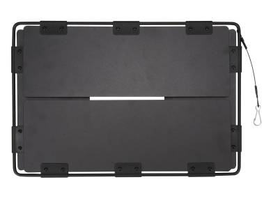 Professionelle, leistungsstarke LED-Flächenleuchte mit flachem Gehäuse, Lichtklappen und den Beleuchtungsarten blendfreies Weißlicht, gerichtetes Weißlicht und farbiges Licht (durch Auswahl aus dem Farbspektrum oder additive Farbmischung oder Auswahl vordefinierter Farbfilter/Gel-Filter). 10 Spezialeffekte, die alle individuell angepasst werden können. Komplette Einstellungen können gespeichert und bei Bedarf wieder abgerufen werden. Inklusive Netzteil.