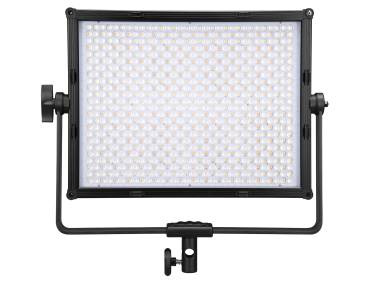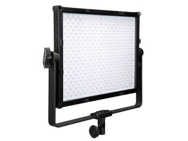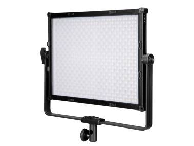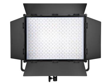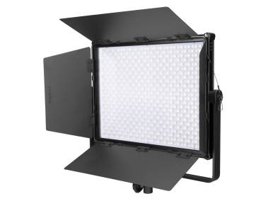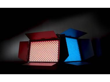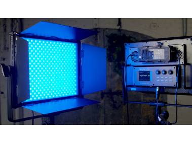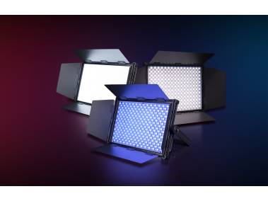Professionelle, leistungsstarke LED-Flächenleuchte mit flachem Gehäuse, Lichtklappen und den Beleuchtungsarten blendfreies Weißlicht, gerichtetes Weißlicht und farbiges Licht (durch Auswahl aus dem Farbspektrum oder additive Farbmischung oder Auswahl vordefinierter Farbfilter/Gel-Filter). 10 Spezialeffekte, die alle individuell angepasst werden können. Komplette Einstellungen können gespeichert und bei Bedarf wieder abgerufen werden. Inklusive Netzteil.