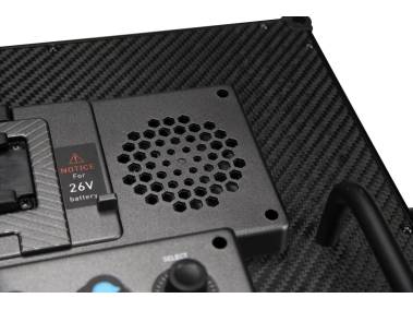Ein geräuscharmes, zweistufiges Kühlgebläse ermöglicht Dauerbetrieb. Kühlgebläse abschaltbar (dadurch reduzierte max. Helligkeit).