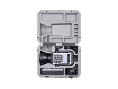 Zur gleichmäßigen, enorm hellen Ausleuchtung (mit mitgeliefertem Reflektor 106500 Lux in 1 m Entfernung bei 5600 Kelvin) mit sehr hoher Farbwiedergabequalität und für die Erzielung besonderer, individuell anpassbarer Beleuchtungseffekte. Dimmbar. Bedienung direkt am Scheinwerfer oder Fernsteuerung über Bluetooth, Funk oder DMX/RDM oder separate FC-Steuereinheit (optionales Zubehör). Bowens-Bajonettanschluss. Netz- oder Akkubetrieb über FC-Steuereinheit.