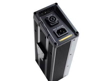 Netzbetrieb über mitgeliefertes Netzteil (Input: AC 100-240 V, 50/60 Hz, Output: DC 48 V, 10,4 A), das entweder mit der optional erhältlichen Stativklammer AS-CP-QR-FZ (Art.-Nr. 3995) oder mit der Schlaufe des Netzteils am Stativ befestigt werden kann, bzw. Netzbetrieb oder Akkubetrieb für den mobilen Einsatz mit einem oder zwei V-Mount-Akkus 14,4–14,8 V / 26 V über die separate FC-Steuereinheit BT-BCS-48V3.5mm (jeweils optionales Zubehör).