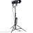 Montagebügel aus Aluminium, zum stufenlosen Schwenken des Scheinwerfers. Einhebel-Verriegelung. Befestigung auf 16 mm (5/8“)-Normzapfen. Integrierter Schirmhalter.