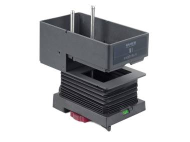 Umfasst Kondensorgehäuse mit Objektivbalgen und Objektivträger, ohne Kondensorsystem und Buchbildbühne. Mit Objektivhalteringen für Objektive bis 50 mm sowie 60 bis 105 mm. Einfache Objektivmontage durch Schnellwechselverschluss. Auch erforderlich zum Umbau von Kaiser Reproständern zum Vergrößerungsgerät.![]()