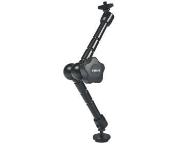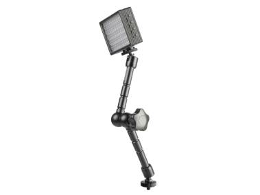 Zur Befestigung und individuellen Ausrichtung von Kameras, Leuchten und Zubehörteilen. Mit Kugelgelenken an beiden Enden. Diese werden zusammen mit dem Mittelgelenk über eine zentrale Arretierschraube gelöst bzw. festgezogen. Stabile Metallausführung. Kamera-Anschlussgewinde B 1/4. Max. Belastbarkeit 2 kg, bei horizontaler Ausrichtung 1 kg. Inkl. umfangreichem Adapter-Set.