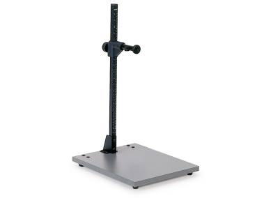 Superkompaktes Stativ für kleine, leichte Kameras (APS-Kameras, digitale Kompaktkameras, CCD-Kameras etc.). Reflexfreies, mattgrau beschichtetes Grundbrett. Führungssäule mit cm- und inch-Skala. Höhenverstellbarer Kameraarm. Anschlussgewinde B 1/4.