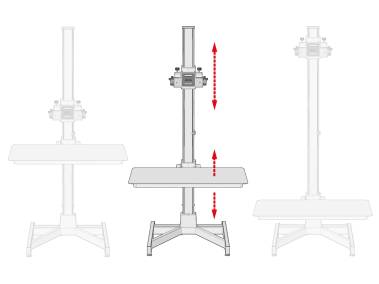 Kameraträger aus Aluminiumguss, horizontal verstellbar über neu entwickelte Parallelführung mit Zahnstange und Handkurbeln für Rechts/Links-Bedienung. Position fixierbar. Kamera-Montageplatte mit präziser Feineinstellung um +/- 90° schwenkbar. Eingebaute Wasserwaage. Kameraträger und Arbeitsplatte mit getrennt steuerbarer motorischer Höhenverstellung. Zwei Verstellgeschwindigkeiten, belastungsunabhängig und konstant. Selbsthemmender Spindeltrieb: jede Höhenposition wird exakt gehalten. Automatische Endabschaltung über Magnetsensor. Kollisionsschutz. Kabelfernbedienung.![]()
