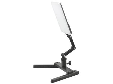 Zwei kompakte LED-Tageslicht-Leuchten für weiche und gleichmäßige Ausleuchtung. Mit 96 High-CRI-LEDs in schlankem Gehäuse. Inkl. Gelenkarm mit 3 Rastgelenken und variablem Standfuß. 14 x 20 cm-Panel mit Diffusorscheibe.