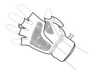Kombination aus Fäustling- und Halbfingerhandschuh für volle Bewegungsfreiheit, sicheren Griff und idealen Kälteschutz. Fäustlings- und Daumenhaube lassen sich nach hinten klappen und über einen Klettverschluss fixieren. Atmungsaktives, hautsympathisches Fleece-Material mit rutschhemmender Beschichtung auf der Handfläche.