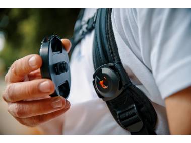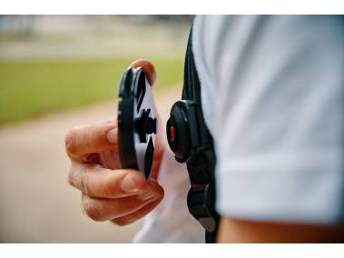 Zuverlässiges Equipment für mehr Konzentration auf das richtige Motiv: Der SNAPSNAP lens cap clip bietet eine schnurlose Befestigung des Objektivdeckels am Schultergurt des Rucksacks oder am Gurt der Kameratasche. Bei dem patentierten System wird die magnet-mechanische Halterung am Schultergurt befestigt und das passende Gegenstück auf den Objektivdeckel geklebt. So hat der Objektivdeckel eine feste und sichere Position und bleibt stets griffbereit. Der Verschluss löst sich automatisch, sobald der Objektivdeckel gerade nach oben angehoben wird.