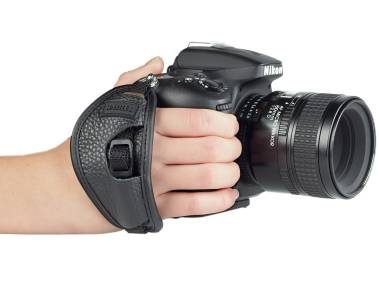 Die montierte Kamera-Handschlaufe erlaubt die zusätzliche Befestigung eines Kamera-Tragegurtes.