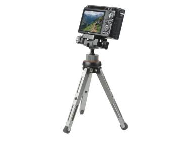 Robustes Dreibein-Mini-Stativ aus hochwertiger Aluminiumlegierung mit eloxierter Oberfläche. Hohe Tragkraft: belastbar bis zu 6 kg.