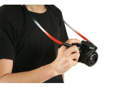 Handgewebter Kameragurt aus reiner Seide mit feiner Farbstufung (Gradation) und ovalem Profil. Elastisch, hochstabil und atmungsaktiv. Hoher Tragekomfort. Lässt sich auch einfach ums Handgelenk wickeln und als Handschlaufe verwenden.