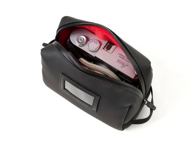Hochwertige Kamera/Zubehör-Tasche mit Platz für ein Kameragehäuse (spiegellose Systemkamera oder Leica M) und ein angesetztes Objektiv. Außenmaterial, Reißverschluss und Schiebergriffe in elegantem Mattschwarz. Außenmaterial aus kratzfestem, wasserdichtem Polyurethan (DULON®). Wasser- und feuchtigkeitsbeständiger Reißverschluss mit fixierbaren Schiebergriffen. Mit zwei seitlichen Tragegriffen, aber auch ideal zur Unterbringung in größeren Foto- und Freizeittaschen oder im Reisegepäck. Samtartiges Innenfutter.