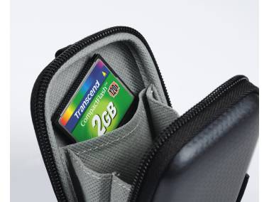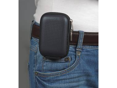 Kompakte Kamerataschen mit verstärkter Außenhülle und Doppelzipper-Reißverschluss. Zubehörfach innen. Mit Gürtelschlaufe, abnehmbarem Trageriemen und Karabinerhaken.