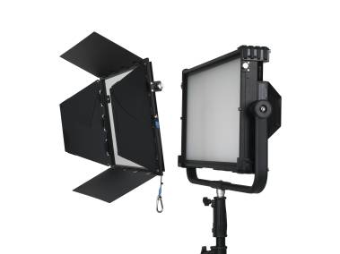 Metallrahmen mit vier Lichtklappen für gezielte Lichtführung und zur Verminderung von Streulicht. Abstrahlwinkel stufenlos verstellbar.