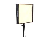 Professionelle, nur 1,86 cm flache Bi-Color-Flächenleuchte (Weißlicht, variable Farbtemperatur 2700 – 6500 Kelvin) mit robustem, aber trotzdem leichtem Metallgehäuse 60 x 61 cm (2' x 2'), das zusammengeklappt werden kann. Selbst mit montierter Softbox flacher als Leuchtmatten mit Halterahmen. Deshalb auch besonders geeignet für Aufnahmesituationen mit wenig Platz (kleine Studios, unter der Decke) und bei mobilen Einsätzen wie Hochzeiten, Events und Meetings.