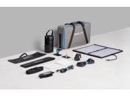 Lieferumfang: Flächenleuchte, separate Steuereinheit, Verbindungskabel (5 m), Netzkabel (4,50 m), Stativklammer, Softbox, inkl. Standard- und Lite-Diffusor sowie Stoffwabe, Leuchtenhalterungen und Transportkoffer.