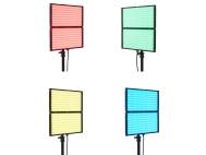 Farbiges Licht, beispielsweise zum Setzen von Farbakzenten bei Porträts, Produktfotos und Filmszenen oder zur Schaffung von Lichtstimmungen durch einen farbig angestrahlten Hintergrund. Kann auf drei verschiedene Arten eingestellt werden: