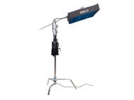 Leuchtenhalterung zur Befestigung der Leuchte auf Stativen und Halterungen mit 16 mm (5/8“)-Normzapfen und zur Stabilisierung der aufgeklappten Leuchte. Mit zwei Kugelgelenken, die über eine einzige Flügelschraube fixiert werden sowie Befestigungsplatte, die über Schnellverriegelung an der Rückseite der Leuchte einrastet. Eine weitere mitgelieferte Leuchtenhalterung besteht aus einer Befestigungsplatte mit 16 mm (5/8“)-Normzapfen.