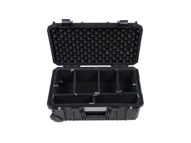 Druck- und stoßfest, staub- und wasserdicht (IP67), temperaturbeständig (- 50 bis + 80° C), flammhemmend (V-2) und stapelbar. Farbe: Schwarz. Außenmaße: 56 x 35,5 x 23 cm. Mit Trennelementen und Fächern für Scheinwerfer und Zubehör. (Weitere Infos siehe 9548311.)