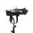 Speziell geformter Montagebügel, zur Verlagerung des Schwerpunktes bei montiertem Scheinwerfer und für einen größeren Schwenkbereich nach unten bei Montage auf einem Stativ. Einseitige Verriegelung mit Klemmhebel. Aluminium. Befestigung auf geeigneten Stativen und an Halterungen mit 16 mm (5/8“)-Normzapfen (Baby Pin) oder 28 mm-Normhülse (Junior Pin).