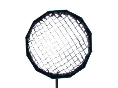 Für die Erzielung von gerichtetem Licht und zur Verminderung von Streulicht kann eine im Lieferumfang enthaltene Stoffwabe befestigt werden.