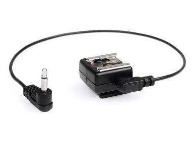 For connecting speedlights to radio controlled flash triggers, e.g. Kaiser TwinLink, Pocket Wizard, Skyport, etc. Set consisting of hot shoe adapter with tripod thread and removable synch cord with 3.5 mm jack plug and synch cord with 2.5 mm jack plug. Length of cables: approx. 30 cm (11.8 in.) respectively.