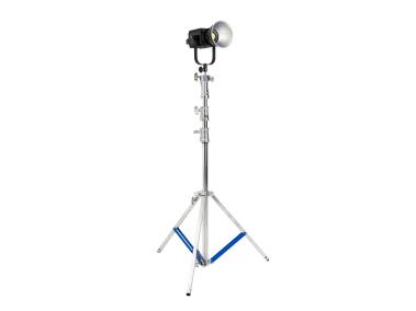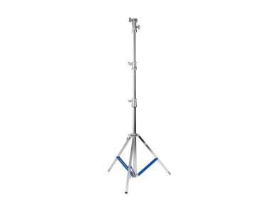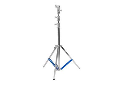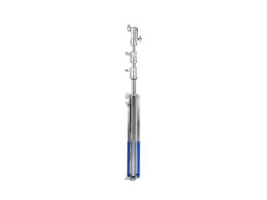 3-section, telescopic center column, with spring cushion. One leg can be leveled.
