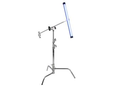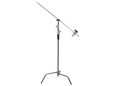 Professional studio stand with swiveling and sliding boom and solid turtle base.