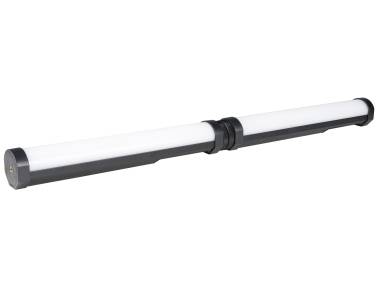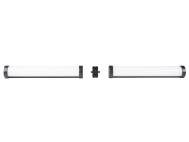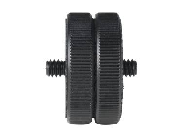 With two 1/4" threaded pins and two large knurled discs (one is a lock nut). For example to connect two PavoTube II lights (3708, 3720, 3723).