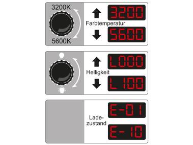 Color temperature can be adjusted from 3200 Kelvin (artificial light/warm-white) up to 5600 Kelvin (daylight/neutral color rendering).