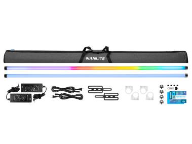 With two multifunctional LED color effect lights in tubular form. Provide white light and colored light as well as special lighting effects, including segment effects. Direct control or remote control via Bluetooth, radio or DMX/RDM. Offers either mains operation or battery operation with integrated lithium-ion battery for mobile, mains-independent use. Multiple mounting and handling possibilities. Mains/charging adapters, mounting accessories and padded carrying bag included.