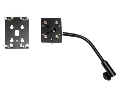 With curved support arm, sturdy ball joint and removable light support plate.