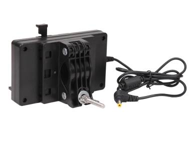 Hinged mounting clamp on the back of the battery holder for attaching to stands with different tube diameters (19 - 36 mm / 0.7 – 1.4 in.).
