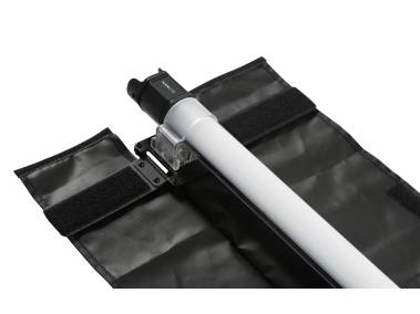 Fabric barn doors attachment for PavoTube II 30C tube light (3944, 3946), with two barn doors for direct-aim lighting.