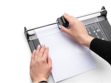 Automatic paper clamping at cutting position. Transparent pressure rail.