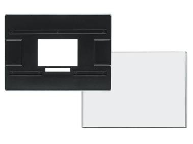 For insertion into the 4583 compound negative carrier of SYSTEM-V enlargers and for former 4483 and 4493 compound negative carrier. Also for the holding devices FilmCopy Vario and FilmCopy Vario Kit. Pair of inserts. Format mask with antistatic finish.
