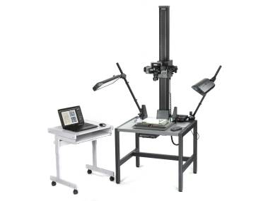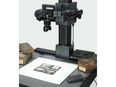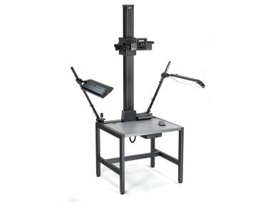 RSP Column for the professional rePRO copy system. Camera carrier equipped with motorized height adjustment via PC/laptop or cable remote control. Height positions can be stored and retrieved with approx. 1/100 millimeter repeat accuracy. Supplied with "Kaiser autoDrive" control program.