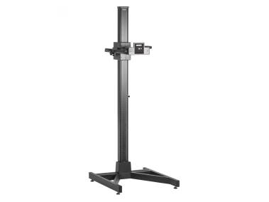 Heavy-duty copy stand for digital and analogue image capturing work with motor-driven height adjustment. Extremely sturdy column, made of a multi-section special extrusion, black anodized, with printed cm and inch scales. Column foot made of double strutted steel tube. Cast aluminum base for bolting the column, with built-in spirit level. Four levelling feet.