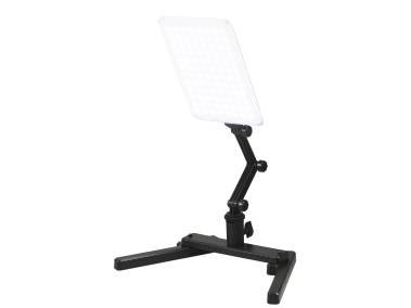 Compact daylight-type panel light for soft and even illumination. Features 96 high CRI LEDs in a slim housing. Includes swivel joint with 3 detent joints and adjustable foot.