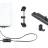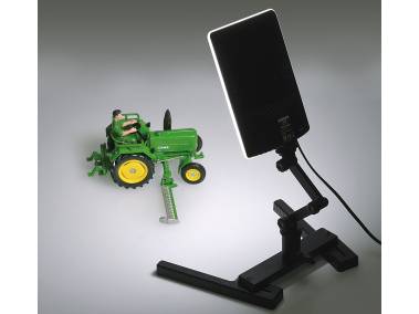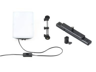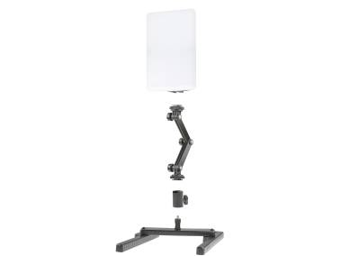 The hinged bracket can also be attached to standard mounting shoes, for example the accessory shoe of a camera or the Kaiser 1211 accessory shoe. This makes it possible to attach the light to the Kaiser „easy-fit“ shooting table (5845). In addition it is possible to attach the bracket on stands and fixtures with 16 mm (5/8“) standard spigot by means of the included adapter or via the 1/4“ tripod threat located in the slide-in foot of the bracket on 1/4” connecting threads.