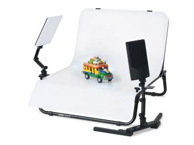 For photo and video shots with digital cameras and video cameras/camcorders. Particularly suitable for interview, YouTube video blogs, still life, product and tabletop photographs.