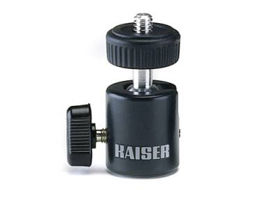 1/4“ connecting thread with lock nut. Handy lever screw for clamping the ball. Can be tilted by 90° for portrait shots. 3/8“ tripod thread with 1/4“ thread adapter.