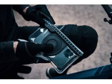Thanks to the patented "just-let-go principle", the case closes automatically and fully hermetically. No manual locking, clicking or pushing. Once snapped onto the VACUUM base, the smartphone is safely protected even on muddy trails.